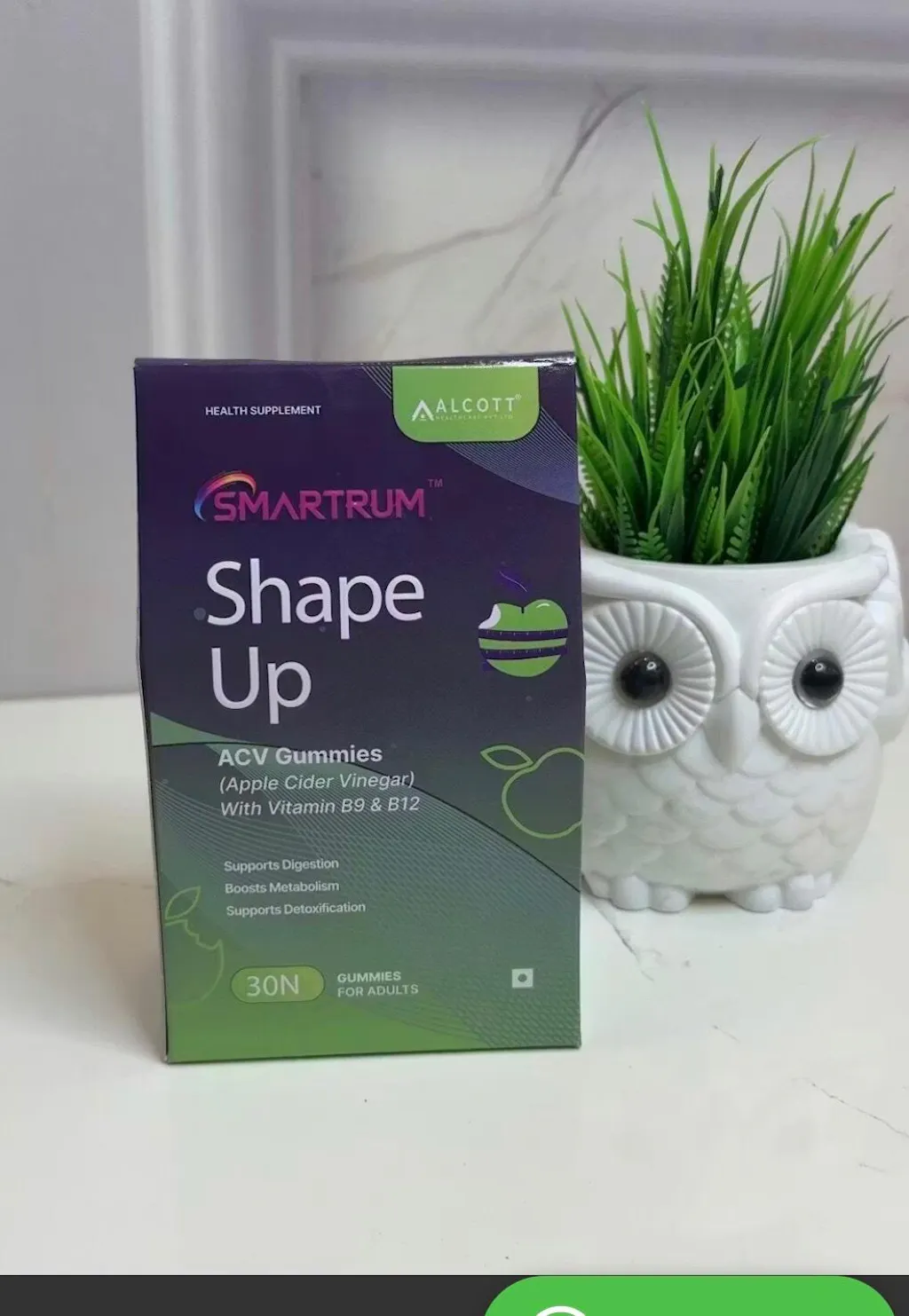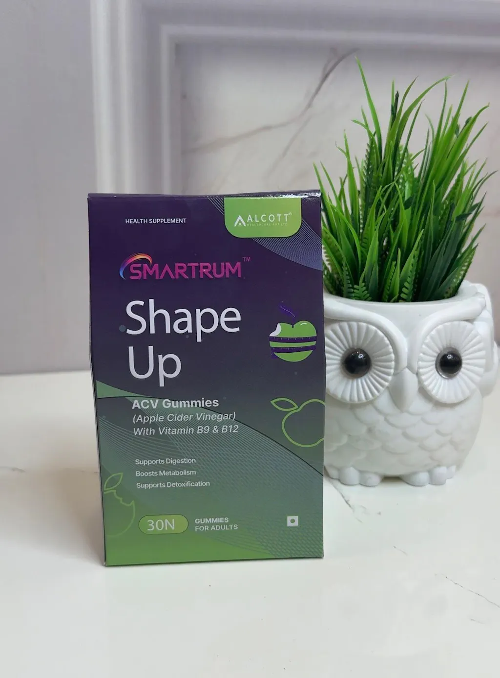 Smartrum Shape Up Gummies are a scientifically formulated wellness supplement designed to support weight management, digestion, and overall metabolic health. Each gummy delivers 250mg of Apple Cider Vinegar (ACV) combined with Vitamin B9 (100mcg) and Vitamin B12 (1.1mcg) to provide a synergistic effect that promotes appetite control, boosts energy, and enhances immunity.